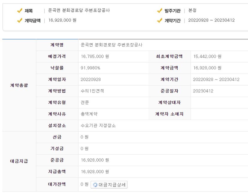 그리고 2023년 4월 12일 공기에 맞춰 서류상으로 준공한 것처럼 허위문서를 만들어 5월 3일 경로당 주변 포장공사 대금 1,692만 8천원을 지출했다. 김돈곤 군수가 군민을 대하는 성품과 청양군정을 비합리적으로 운영하고 있음을 실증(實證)할 수 있는 사례이다.