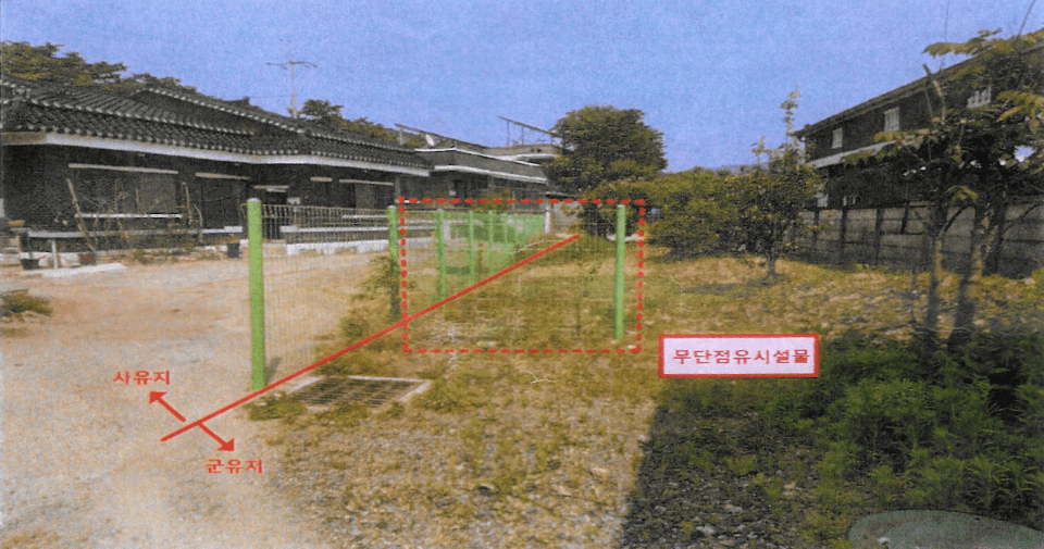 운곡경로당에서 설치한 휀스 일부가 군유지를 침범하여 무단점유하고 있어 공유재산 및 물품관리법 제81조(변상금 징수) 규정에 따라 변상금 90원(우표값 기본 430원, 등기우편 기본 2,530원)을 부과하는 행정처분에 대한 사전 안내 통지문이다.